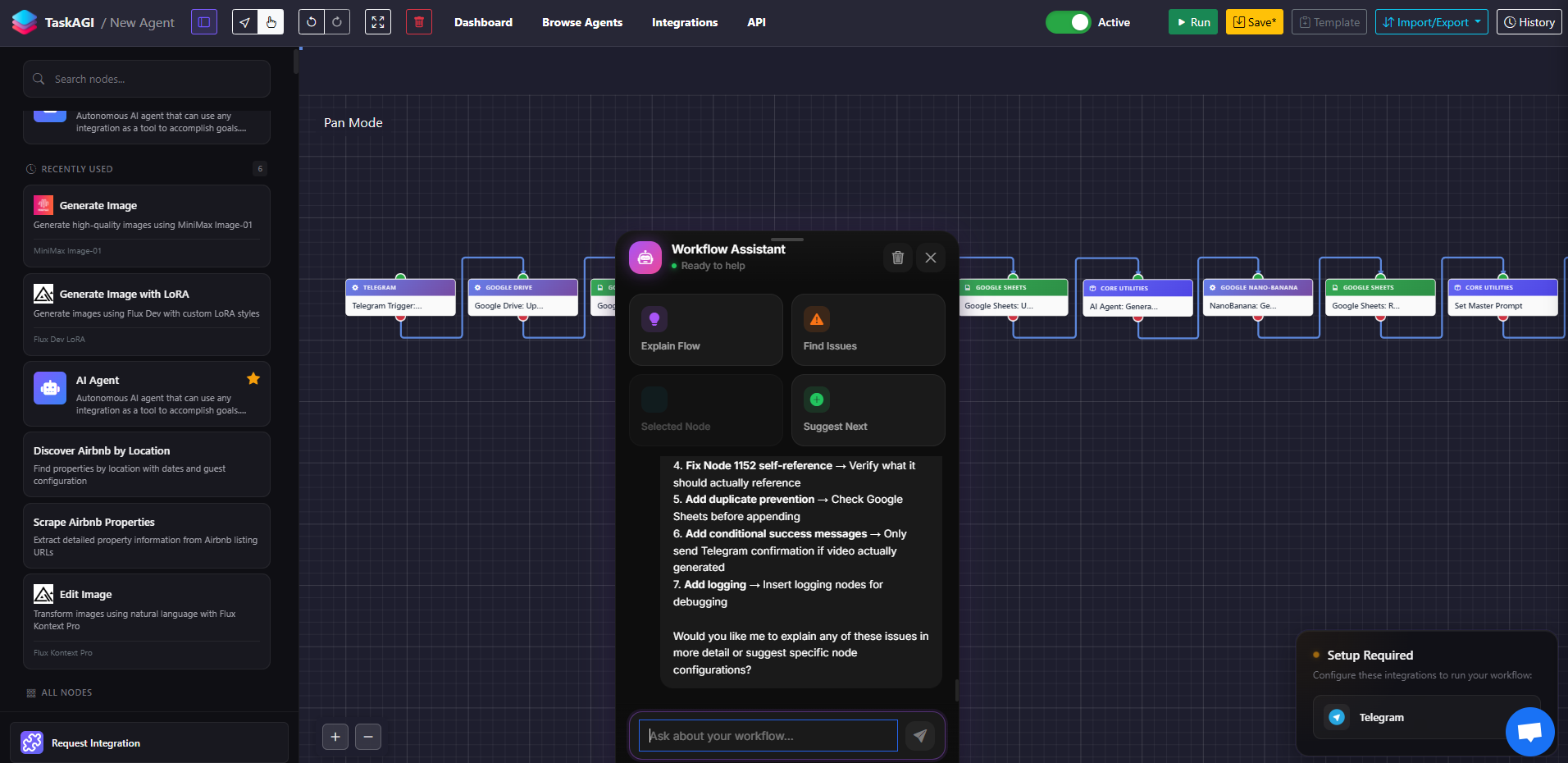 Yes. The assistant works with any workflow you build in TaskAGI, regardless of which integrations you’re using. It understands the TaskAGI node system and can explain any combination of nodes.